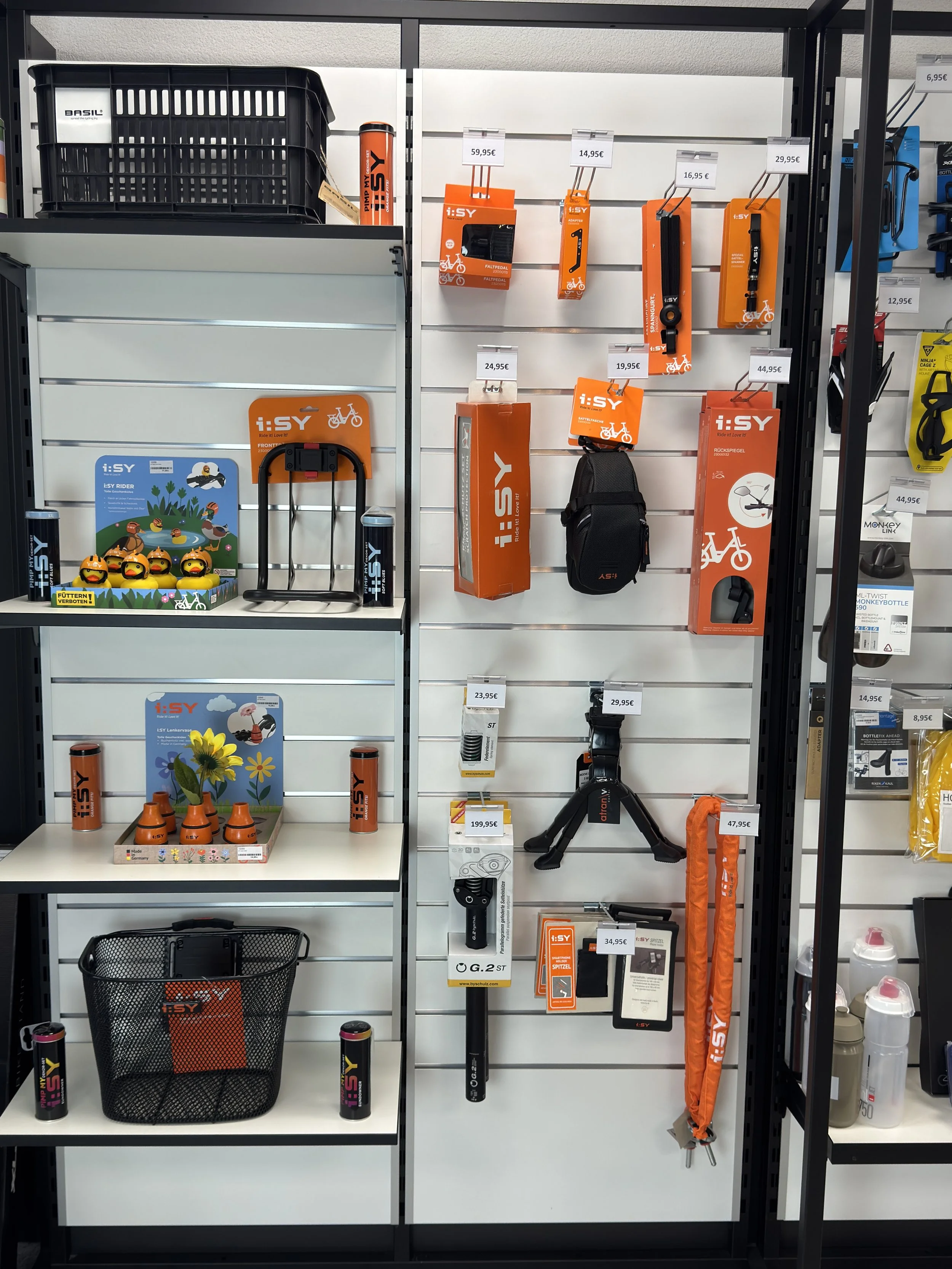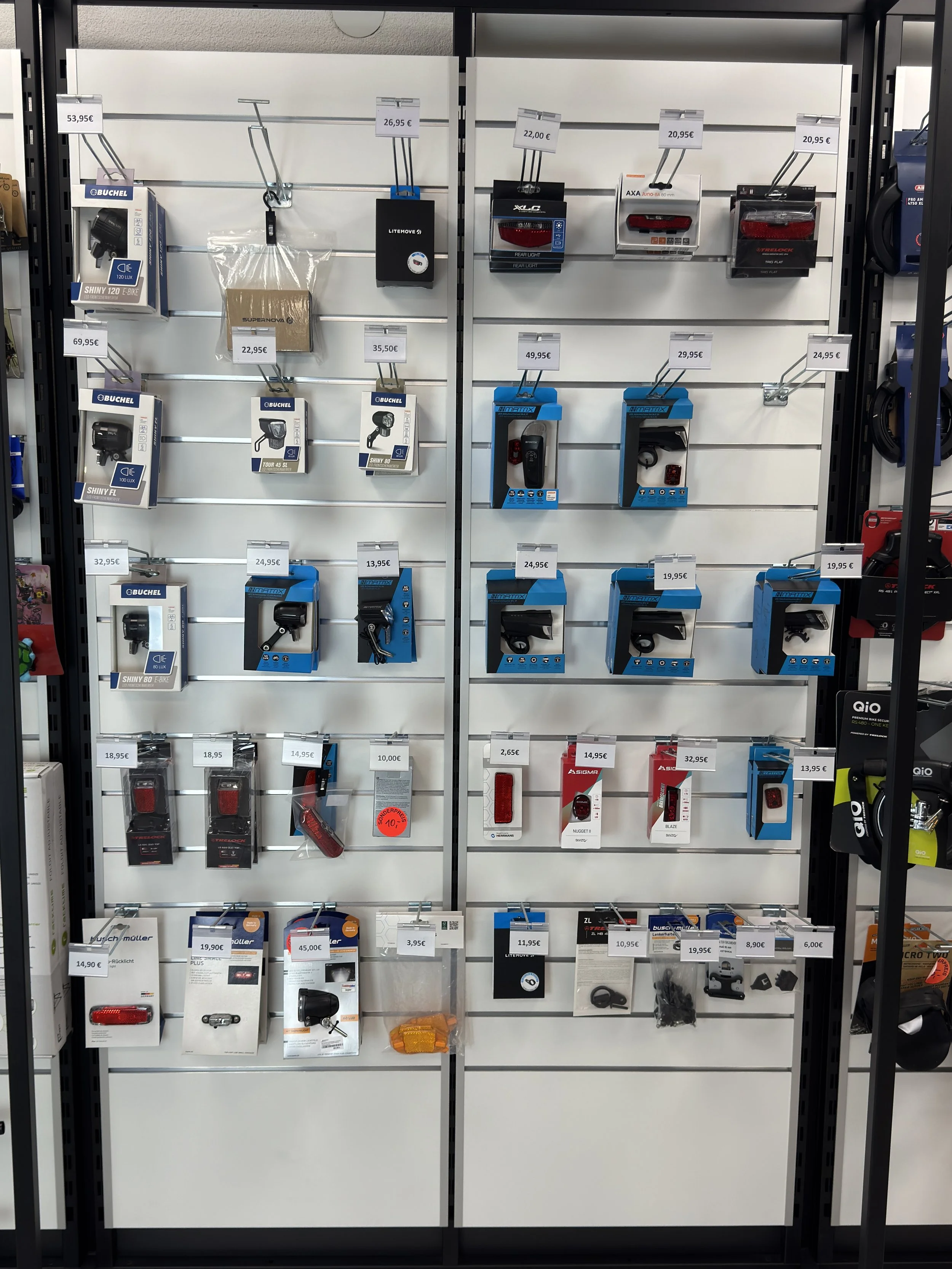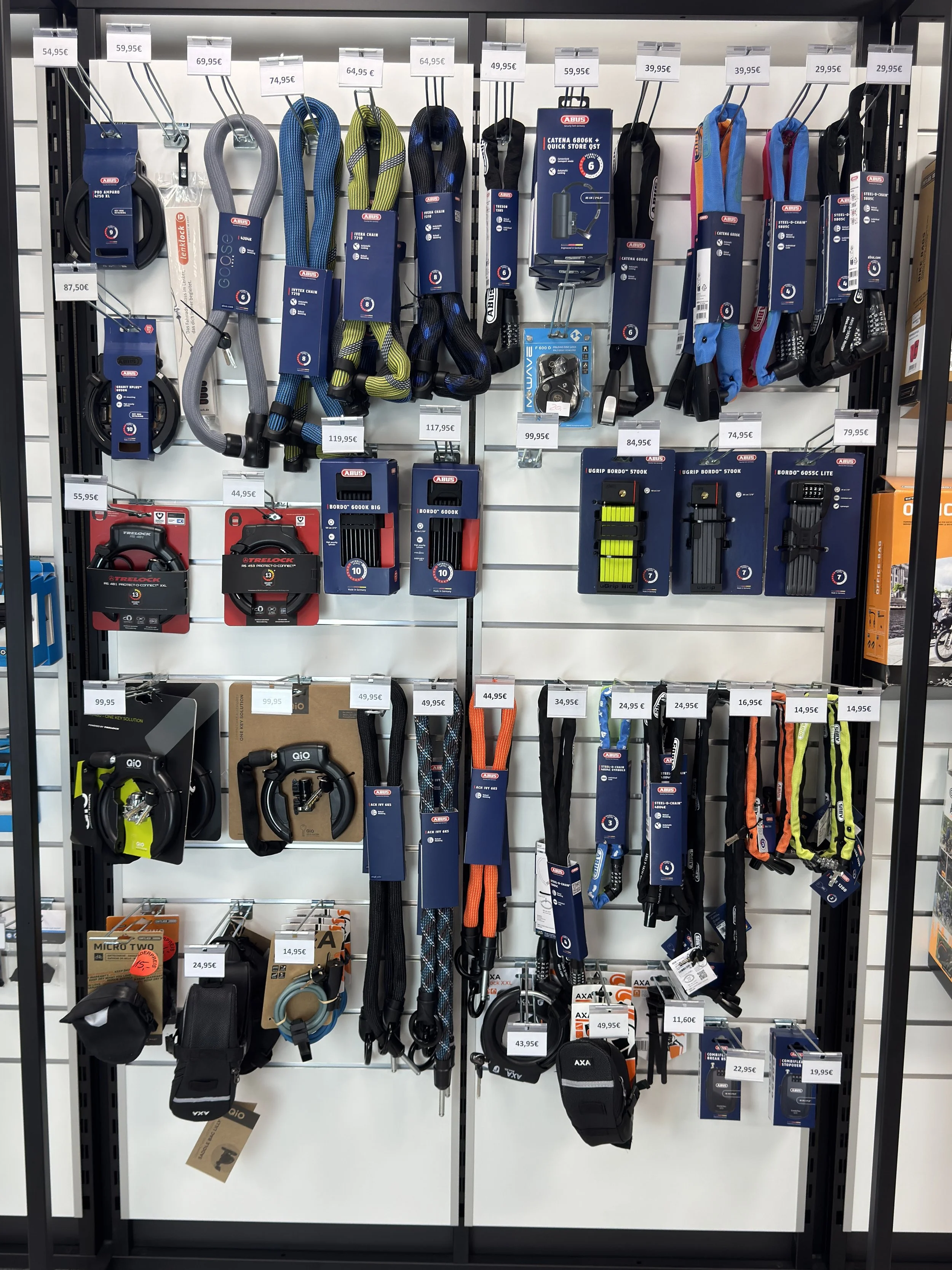 Hier finden Sie eine kleine Auswahl unseres Sortiments an Fahrradzubehör im Ladengeschäft. Verschaffen Sie sich einen Überblick, lassen Sie sich inspirieren und melden Sie sich gerne, wenn wir Sie fachkräftig beraten können.